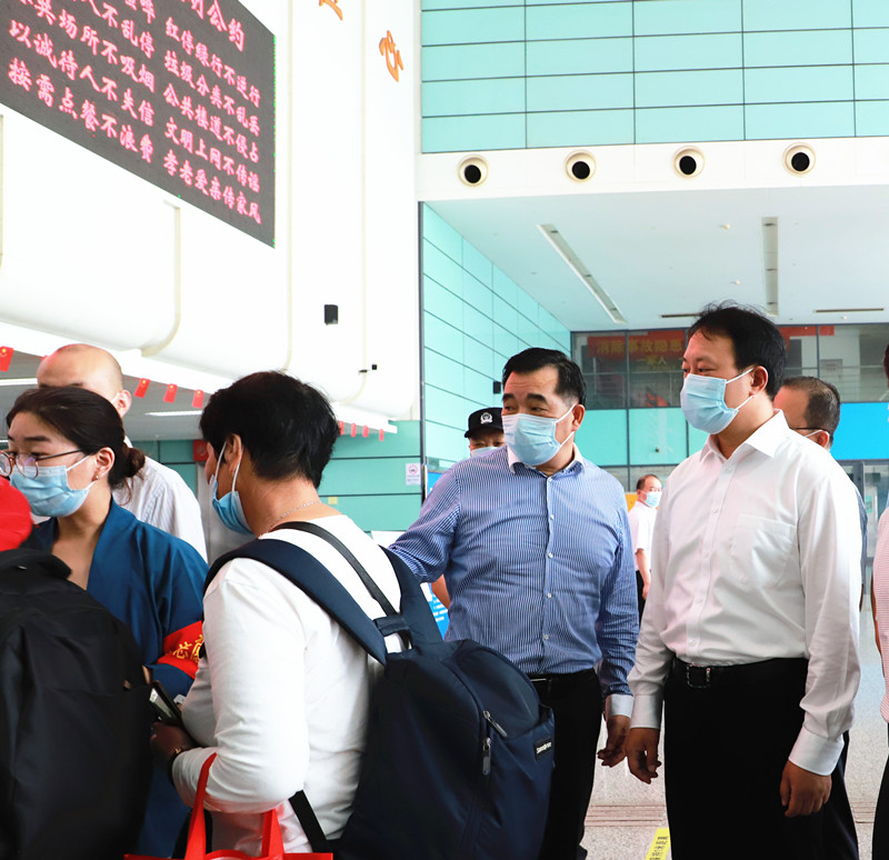 10月1日上午,市交通運輸局黨委書記、局長薛曄帶隊來到常州汽車站檢查國慶安全生產和疫情防控工作,常運集團董事長兼總經理謝星,副總經理費軒龍、朱平春陪同檢查。薛曄一行檢查了車站旅客到達區、進站口的防疫政策執行情況,查看了實名制進站乘車和進站安檢,詳細了解了國慶期間的旅客組織情況,對假期堅守一線的站務員、駕駛員進行慰問,強調公司要認真落實安全生產和疫情防控的要求,叮囑職工們既要服務好旅客、確保旅客平安出行,也要做好疫情個人防護。