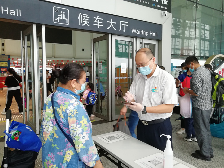 為進一步做好疫情防控工作,車站嚴格落實掃碼進站措施,在進站口等多處張貼場所碼,方便進站旅客提前掃描出示,減少人員聚集。在進站口設置了紅外線體溫監測儀,進站旅客實現100%測溫通行。