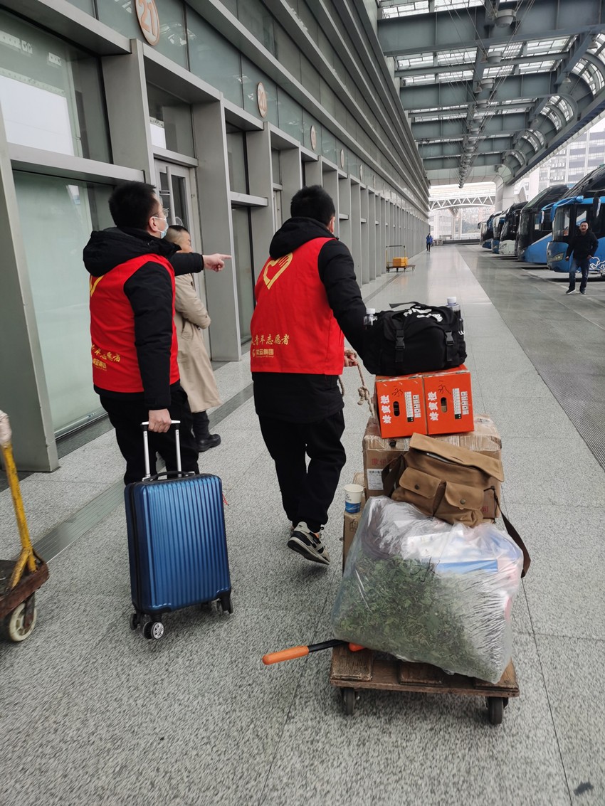 “怎樣讓我們的志愿服務更走心,更加滿足旅客進站乘車的真正剛需”,常運集團在組織今年的“愛在旅途 順風志愿行”春運志愿服務活動時首先專注這里。務工返鄉的旅客行李多,中老年旅客需要更多的人工指引幫助,攜帶“小候鳥”回家的既要拎著行李還要拖著孩子……各種各樣的情況,各種各樣的需求。因此,常州汽車站順風志愿服務隊將回答問詢、站內引導、幫提行李這些乘車剛需作為服務重點,2月7-8日,志愿者們分布在實名制進站口、安檢儀旁及候車室、一樓廣場,一幕幕溫暖的故事持續上演。一對回新沂的老夫妻,拖著平板車,上面放著紙箱拎袋七八個,外加兩輛不新的折疊自行車,拖車寬到進不了閘機;一位阿姨拖著大號行李箱,手提拎包拎袋四五個,獨自上不了電梯;一個大叔是孩子在“常州汽車站”微信公眾號上幫買了票,以為要取了票才能乘車又不會操作;還有一雙干燥皴裂的手拿著一張車票,不知道在哪里檢票而不知所措,這些都在志愿者和車站工作人員的幫助下,順利地踏上了歸途,他們一連十幾個的“謝謝”和不停回眸的點頭笑容,讓志愿者們也靦腆起來。