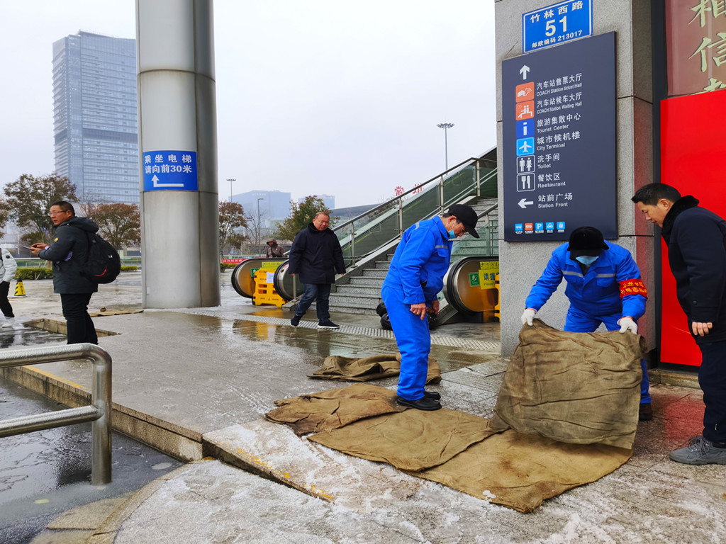公司通過GPS動態監控平臺掌握營運車輛在途狀況,及時提醒路況信息,要求減速慢行。為預防雪后濕滑及冰凍,常州各車站組織人員在旅客進出口處、電梯口、車輛上下坡處等重點結冰區域撒鹽并鋪設防滑麻袋,在進站候車扶梯、樓梯處做好安全提醒,全力保障旅客出行安全。23日凌晨時分,公司安管人員帶隊上路上線,查看道路情況,并根據探得的道路狀況,對班次作出了調整,確保春運期間旅客的出行安全。